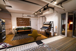 Der 45 m² große Regieraum verfügt über eine breite Auswahl moderner und vintage Preamps sowie eine hochwertige Outboard-Sammlung (Neve, Tube-Tech, Chandler u.v.m.). Im Zentrum steht eine 40-Kanal Tascam M700 Konsole, unterstützt von Pro Tools HD3 Accel (32 I/O) und einem RME Fireface mit Apogee-Konvertern (24 I/O), wodurch ein einfacher Laptop-Anschluss möglich ist. Für den klassischen Vintage-Sound steht eine 2" Otari MX80 24-Spur-Bandmaschine in exzellentem Zustand bereit. Das Monitoring erfolgt über Westlake BBSM12, ergänzt durch zwei Dynaudio ABES Subwoofer und Yamaha NS10. Ein weiteres Highlight des Raums ist die Hammond C3-Orgel mit Leslie 122.